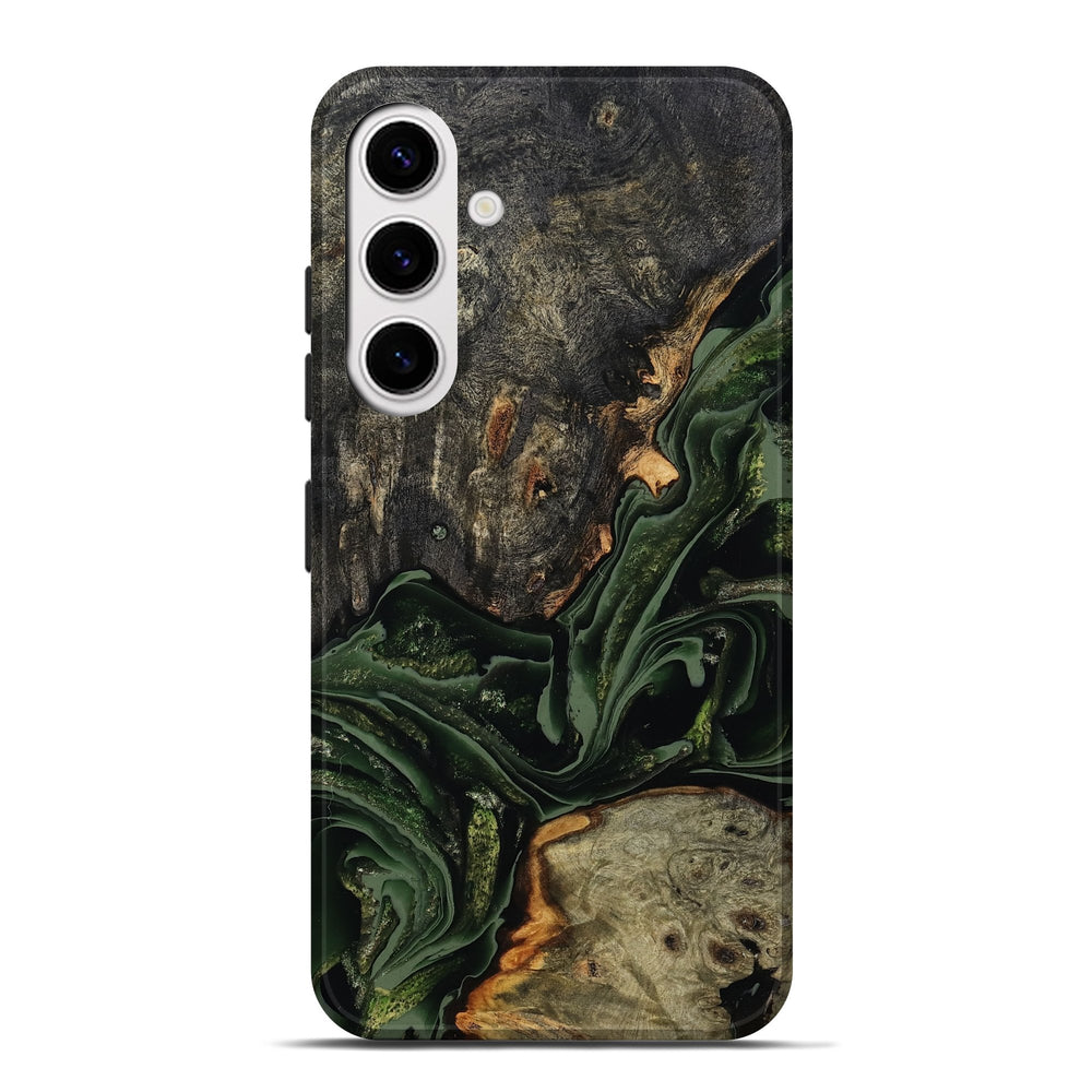 Our Live Edge cases are made from an amazing combination of stabilized wood burl and colored resin. Our stabilization process hardens the wood to protect against cracks and breaks. We do every step of the process at our shop in Northern Indiana. Perfectly fits the Galaxy S25 Plus.