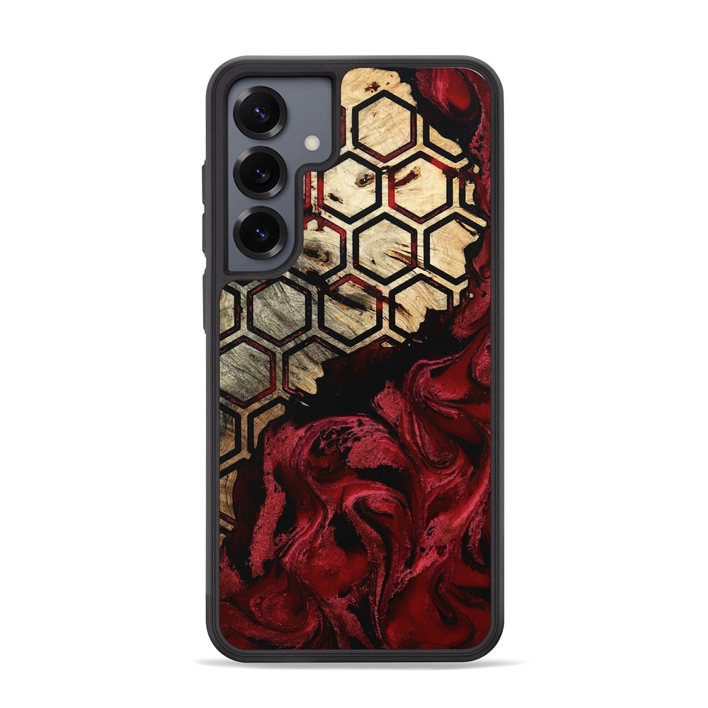 Edythe has a striking pattern of hexagons that adds depth and interest. The warm tones of the Buckeye wood blend beautifully with rich, swirling reds.