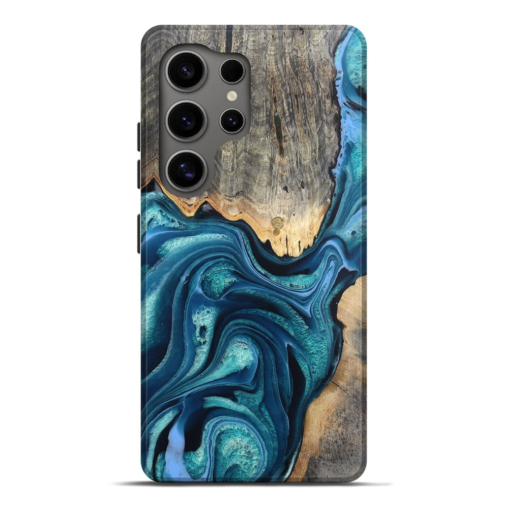 Our Live Edge cases are made from an amazing combination of stabilized wood burl and colored resin. Our stabilization process hardens the wood to protect against cracks and breaks. We do every step of the process at our shop in Northern Indiana. Perfectly fits the Galaxy S25 Ultra.
