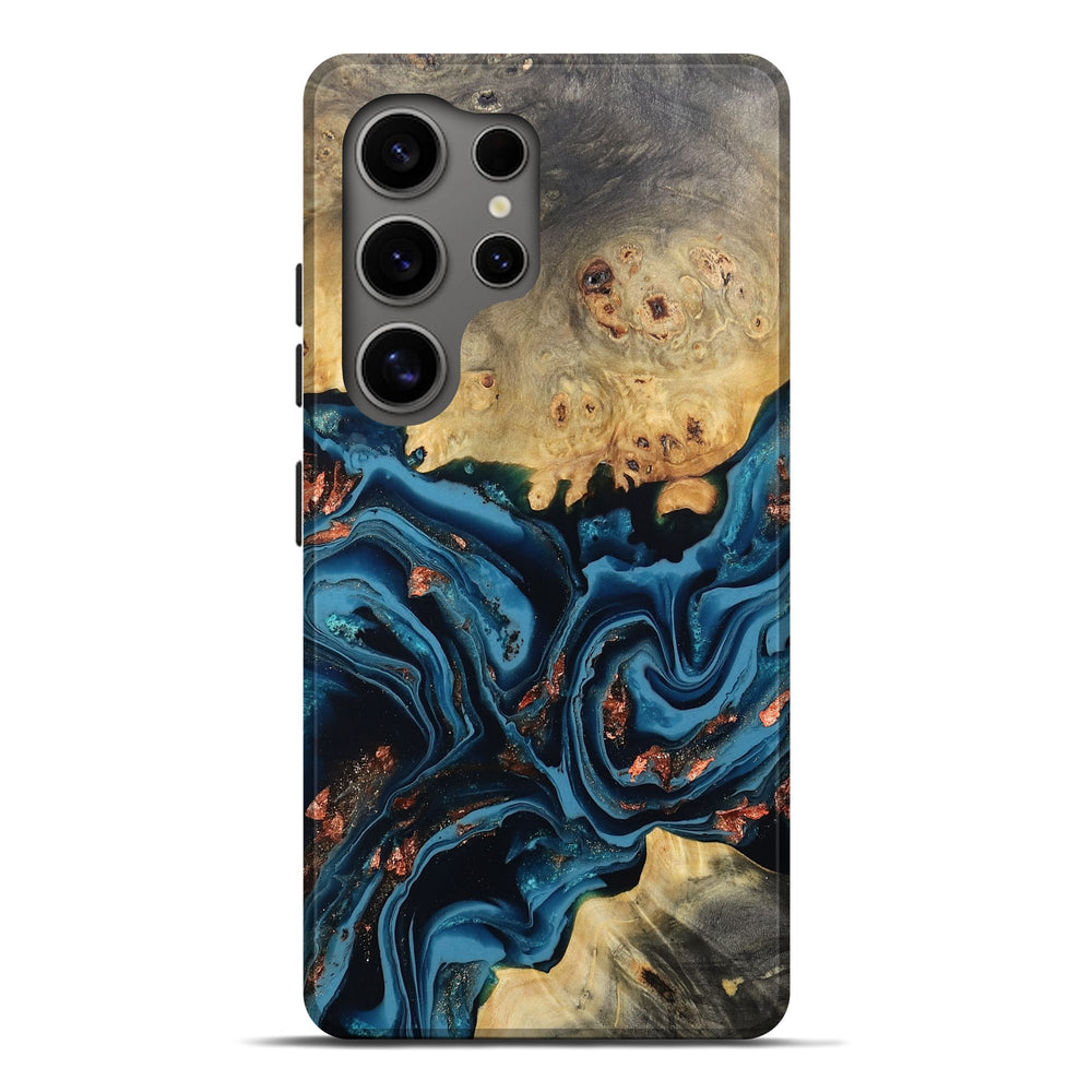 Our Live Edge cases are made from an amazing combination of stabilized wood burl and colored resin. Our stabilization process hardens the wood to protect against cracks and breaks. We do every step of the process at our shop in Northern Indiana. Perfectly fits the Galaxy S25 Ultra.