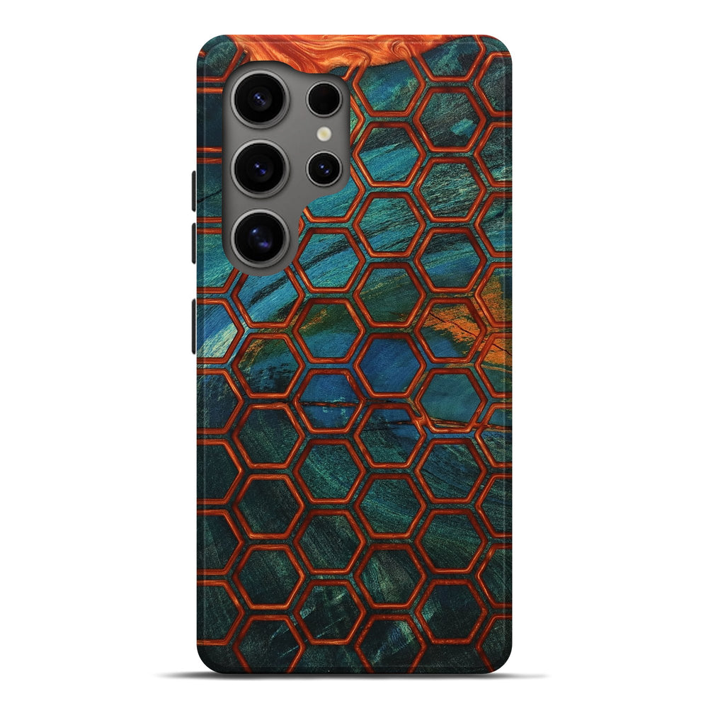 Our Live Edge cases are made from an amazing combination of stabilized wood burl and colored resin. Our stabilization process hardens the wood to protect against cracks and breaks. We do every step of the process at our shop in Northern Indiana. Perfectly fits the Galaxy S25 Ultra.