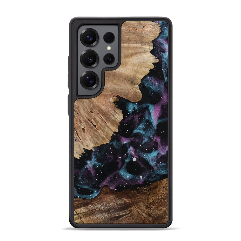 Russ has beautiful Maple wood with smooth curves and warm tones. The design features a cosmic pattern of blues and purples that adds a striking contrast.