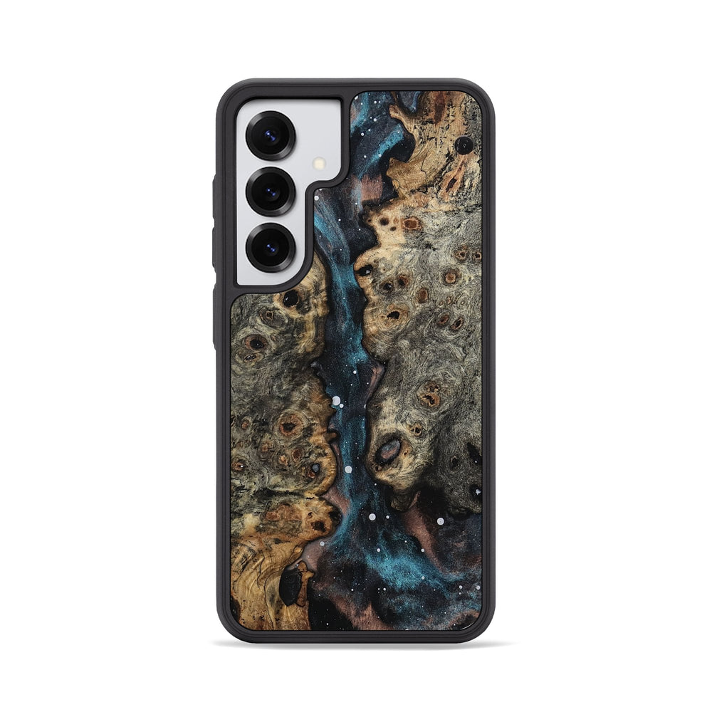 Ardith has a beautiful mix of dark and light wood, with unique patterns that resemble swirling galaxies. Its surface features striking blue accents and small, rounded shapes that create a captivating visual depth.