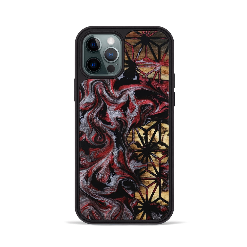 Coby is a vibrant piece of Buckeye wood with rich reds and blacks swirling together. It features a striking geometric pattern, creating a unique blend of natural beauty and design.