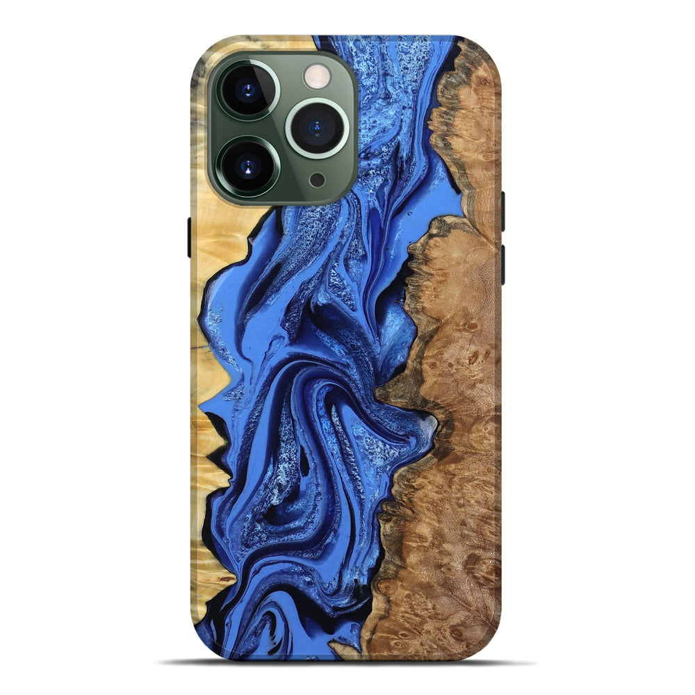 Our Live Edge cases are made from an amazing combination of stabilized wood burl and colored resin. Our stabilization process hardens the wood to protect against cracks and breaks. We do every step of the process at our shop in Northern Indiana. Perfectly fits the iPhone 13 Pro Max.