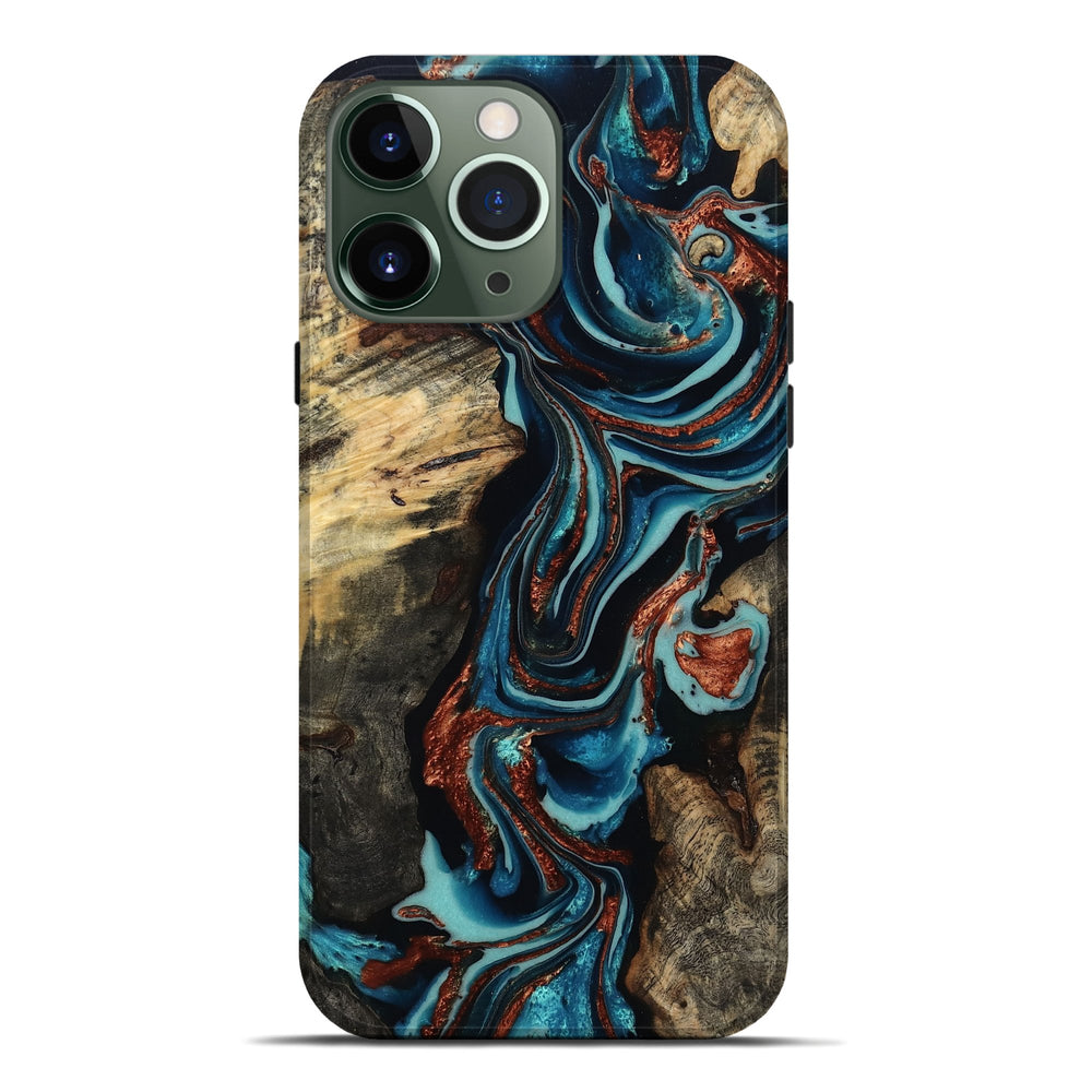 Our Live Edge cases are made from an amazing combination of stabilized wood burl and colored resin. Our stabilization process hardens the wood to protect against cracks and breaks. We do every step of the process at our shop in Northern Indiana. Perfectly fits the iPhone 13 Pro Max.