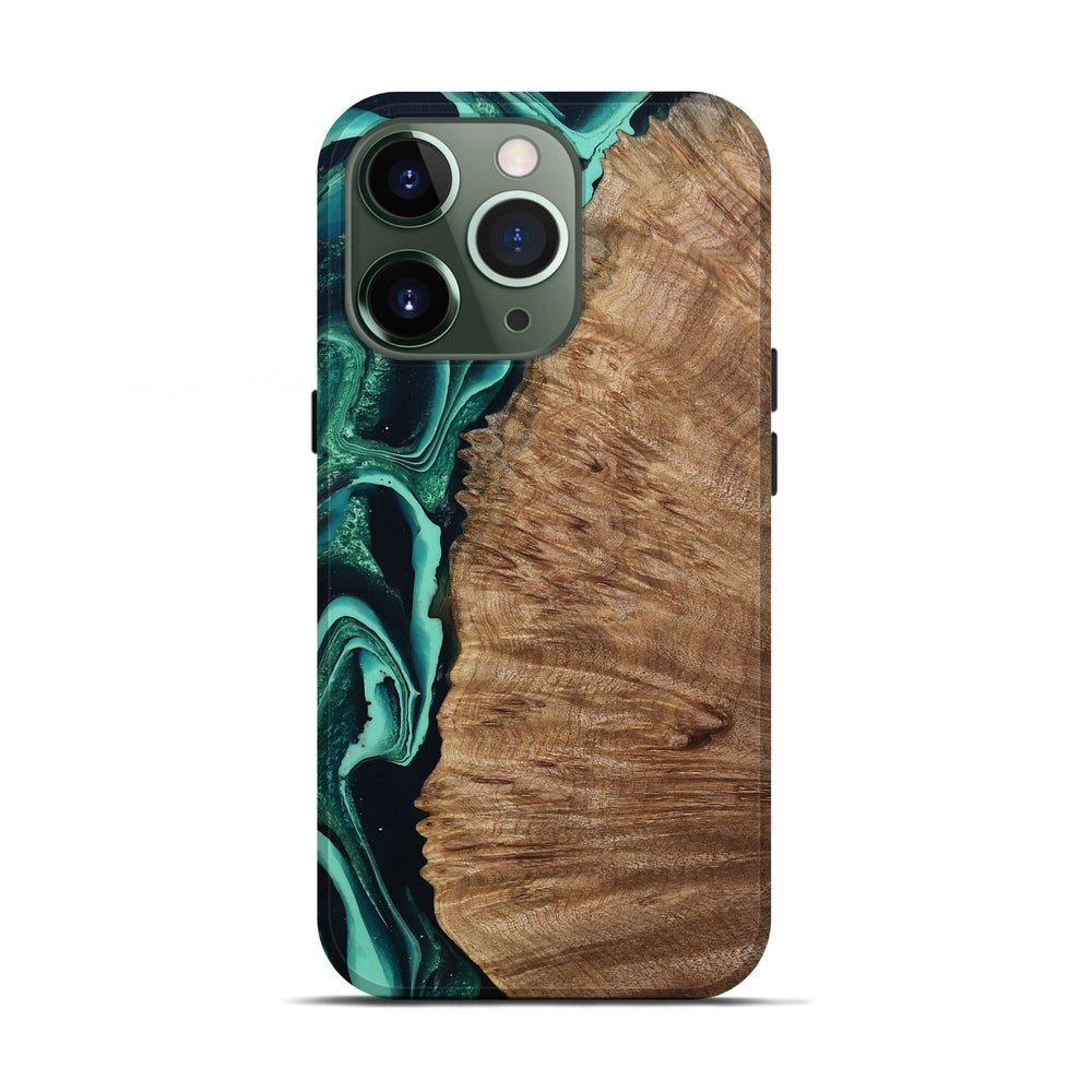 Our Live Edge cases are made from an amazing combination of stabilized wood burl and colored resin. Our stabilization process hardens the wood to protect against cracks and breaks. We do every step of the process at our shop in Northern Indiana. Perfectly fits the iPhone 13 Pro.