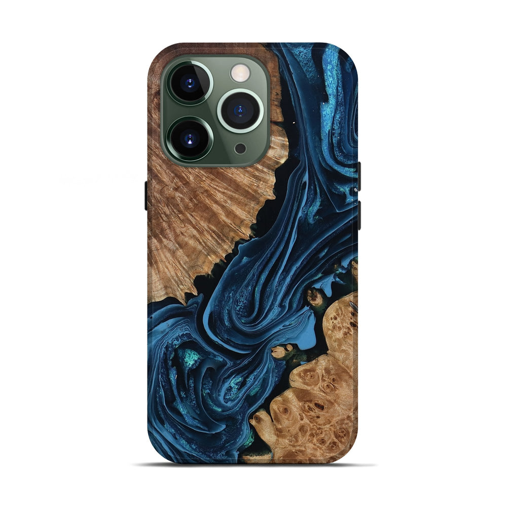 Our Live Edge cases are made from an amazing combination of stabilized wood burl and colored resin. Our stabilization process hardens the wood to protect against cracks and breaks. We do every step of the process at our shop in Northern Indiana. Perfectly fits the iPhone 13 Pro.