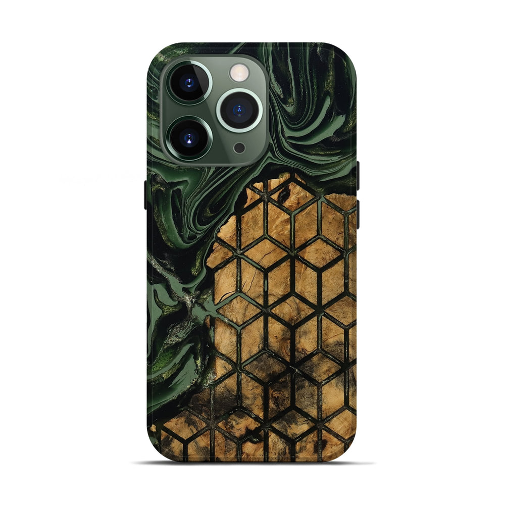 Our Live Edge cases are made from an amazing combination of stabilized wood burl and colored resin. Our stabilization process hardens the wood to protect against cracks and breaks. We do every step of the process at our shop in Northern Indiana. Perfectly fits the iPhone 13 Pro.