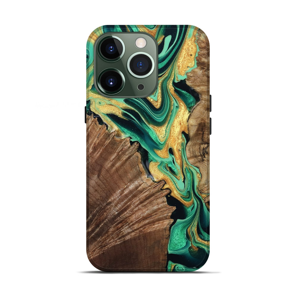 Our Live Edge cases are made from an amazing combination of stabilized wood burl and colored resin. Our stabilization process hardens the wood to protect against cracks and breaks. We do every step of the process at our shop in Northern Indiana. Perfectly fits the iPhone 13 Pro.