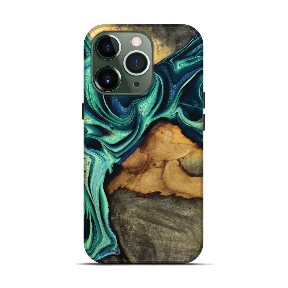 Our Live Edge cases are made from an amazing combination of stabilized wood burl and colored resin. Our stabilization process hardens the wood to protect against cracks and breaks. We do every step of the process at our shop in Northern Indiana. Perfectly fits the iPhone 13 Pro.