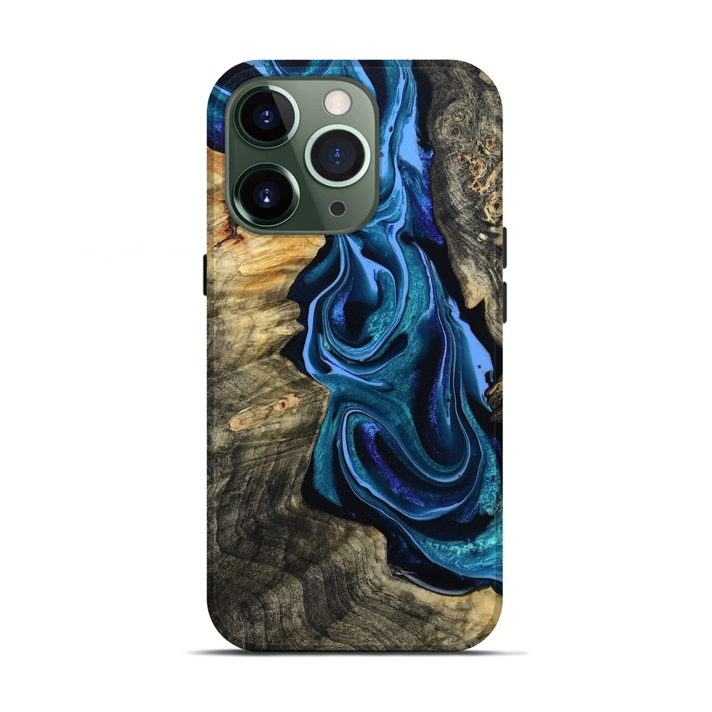 Our Live Edge cases are made from an amazing combination of stabilized wood burl and colored resin. Our stabilization process hardens the wood to protect against cracks and breaks. We do every step of the process at our shop in Northern Indiana. Perfectly fits the iPhone 13 Pro.