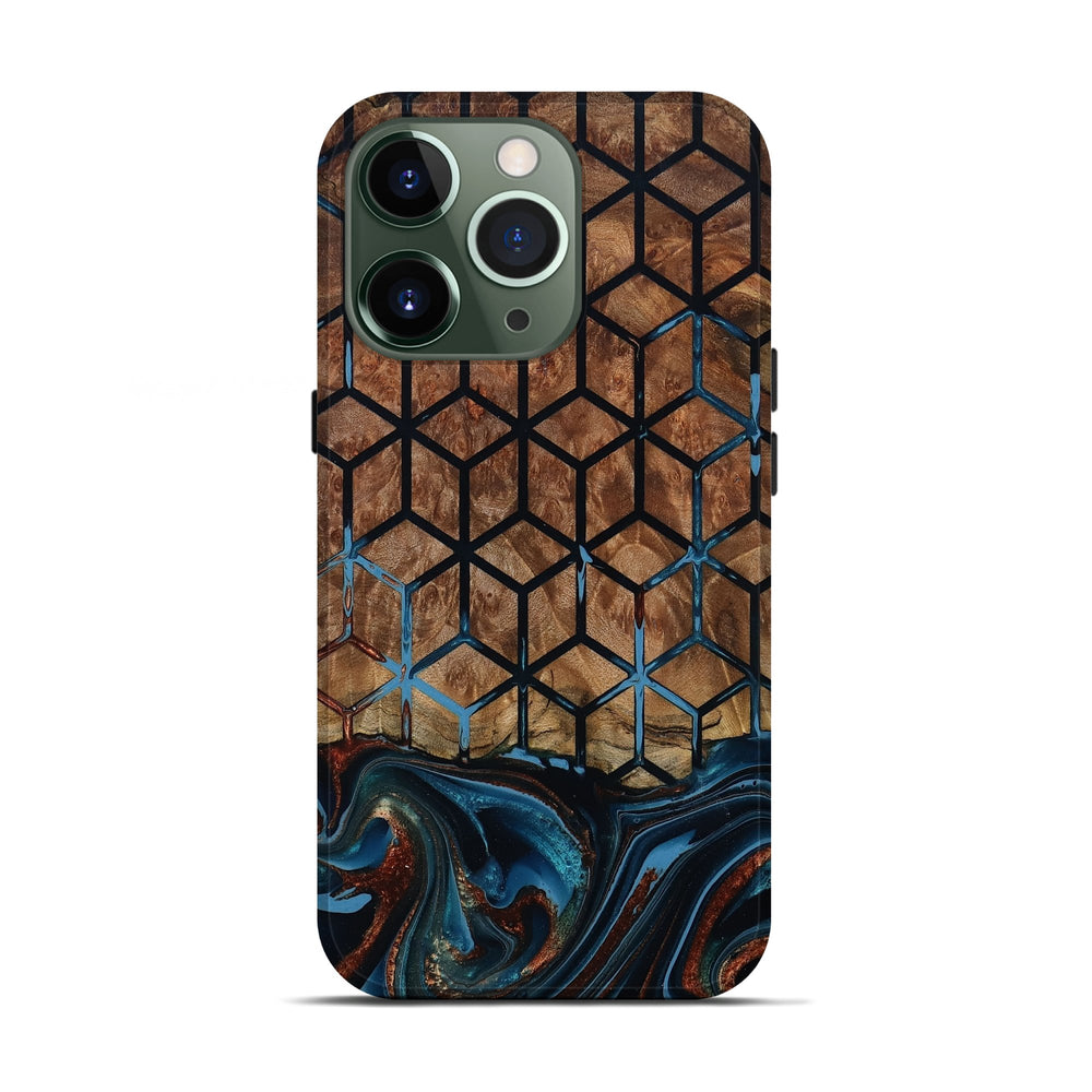 Our Live Edge cases are made from an amazing combination of stabilized wood burl and colored resin. Our stabilization process hardens the wood to protect against cracks and breaks. We do every step of the process at our shop in Northern Indiana. Perfectly fits the iPhone 13 Pro.