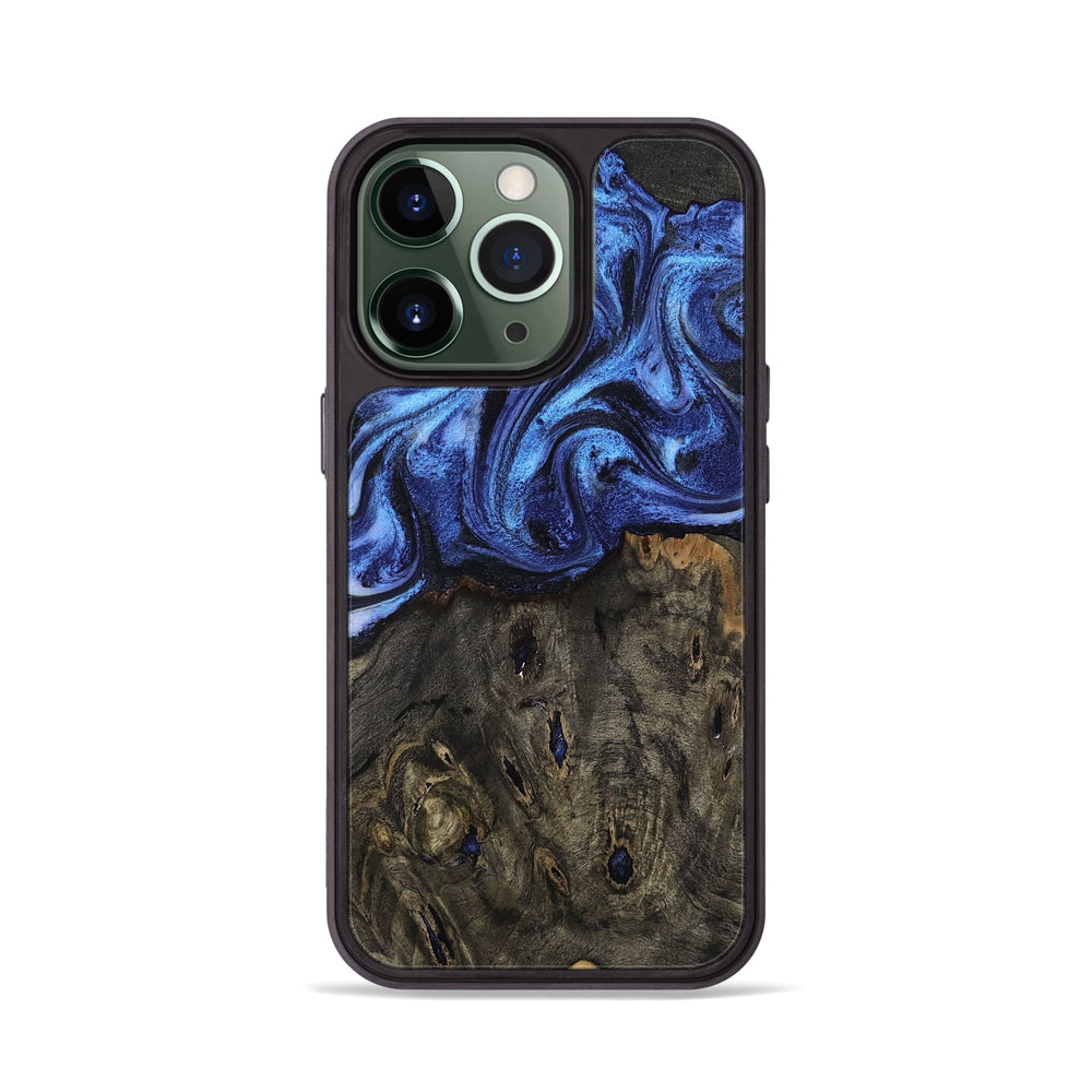 Jess has a beautiful mix of swirling blue patterns that stand out against a rich, natural wood grain. The dark tones and lighter spots create a lovely contrast, making each section unique.