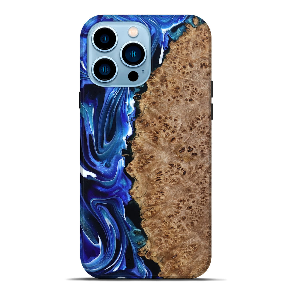 Our Live Edge cases are made from an amazing combination of stabilized wood burl and colored resin. Our stabilization process hardens the wood to protect against cracks and breaks. We do every step of the process at our shop in Northern Indiana. Perfectly fits the iPhone 14 Pro Max.