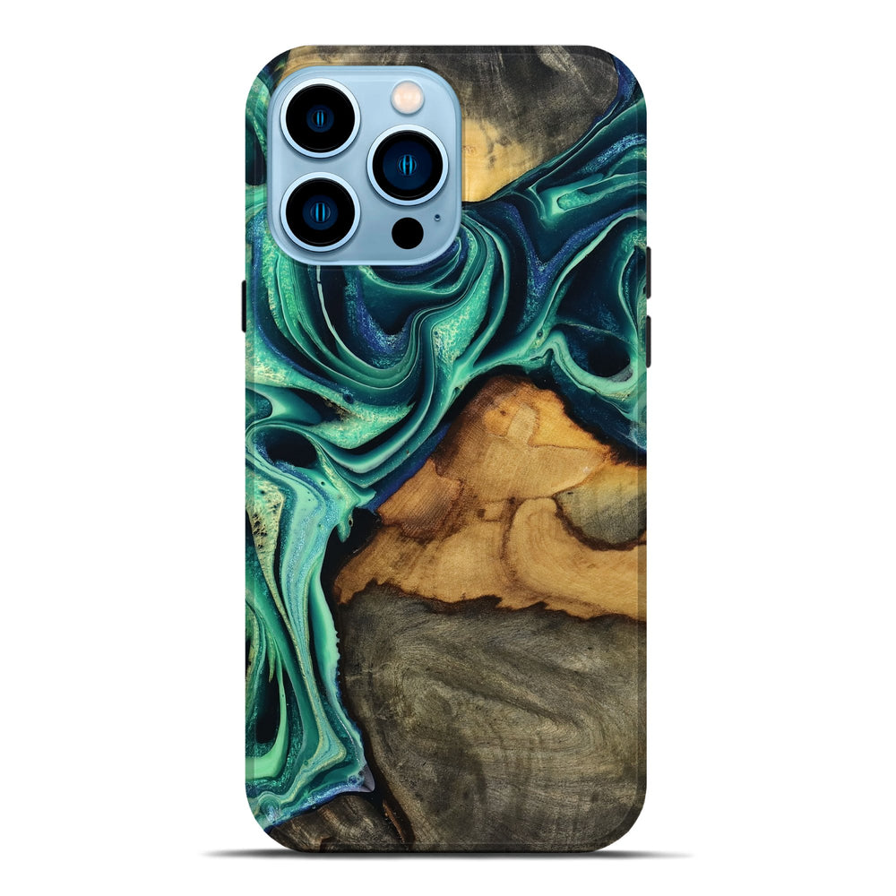 Our Live Edge cases are made from an amazing combination of stabilized wood burl and colored resin. Our stabilization process hardens the wood to protect against cracks and breaks. We do every step of the process at our shop in Northern Indiana. Perfectly fits the iPhone 14 Pro Max.