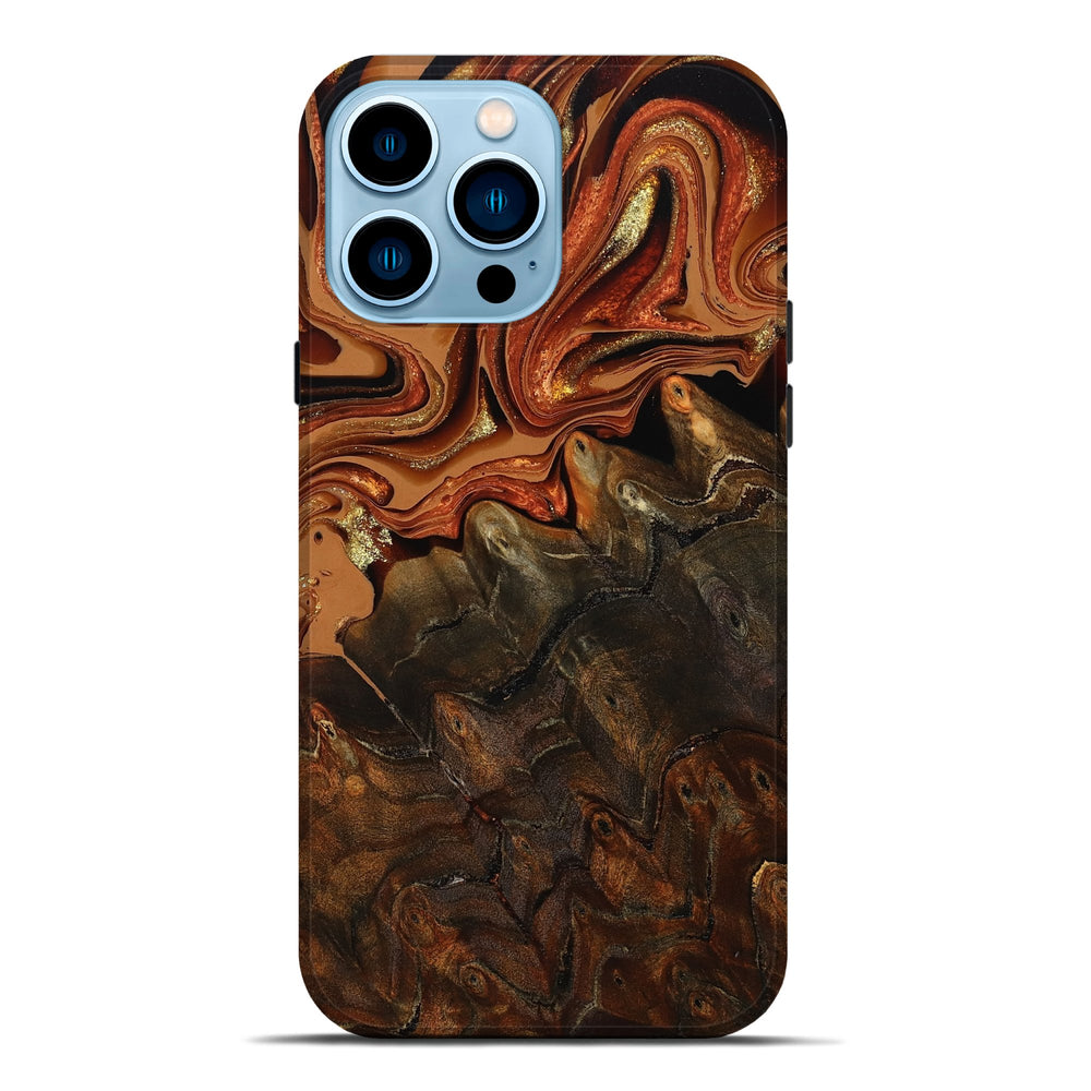 Our Live Edge cases are made from an amazing combination of stabilized wood burl and colored resin. Our stabilization process hardens the wood to protect against cracks and breaks. We do every step of the process at our shop in Northern Indiana. Perfectly fits the iPhone 14 Pro Max.