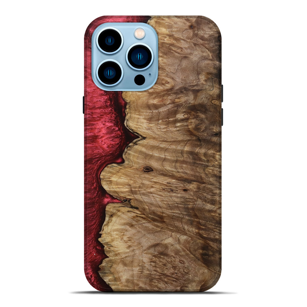 Our Live Edge cases are made from an amazing combination of stabilized wood burl and colored resin. Our stabilization process hardens the wood to protect against cracks and breaks. We do every step of the process at our shop in Northern Indiana. Perfectly fits the iPhone 14 Pro Max.