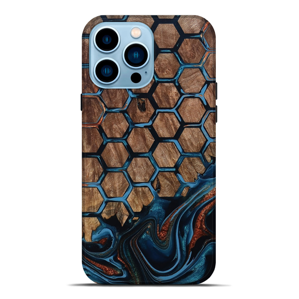 Our Live Edge cases are made from an amazing combination of stabilized wood burl and colored resin. Our stabilization process hardens the wood to protect against cracks and breaks. We do every step of the process at our shop in Northern Indiana. Perfectly fits the iPhone 14 Pro Max.