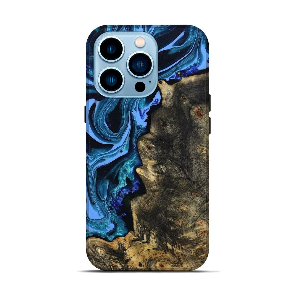 Our Live Edge cases are made from an amazing combination of stabilized wood burl and colored resin. Our stabilization process hardens the wood to protect against cracks and breaks. We do every step of the process at our shop in Northern Indiana. Perfectly fits the iPhone 14 Pro.