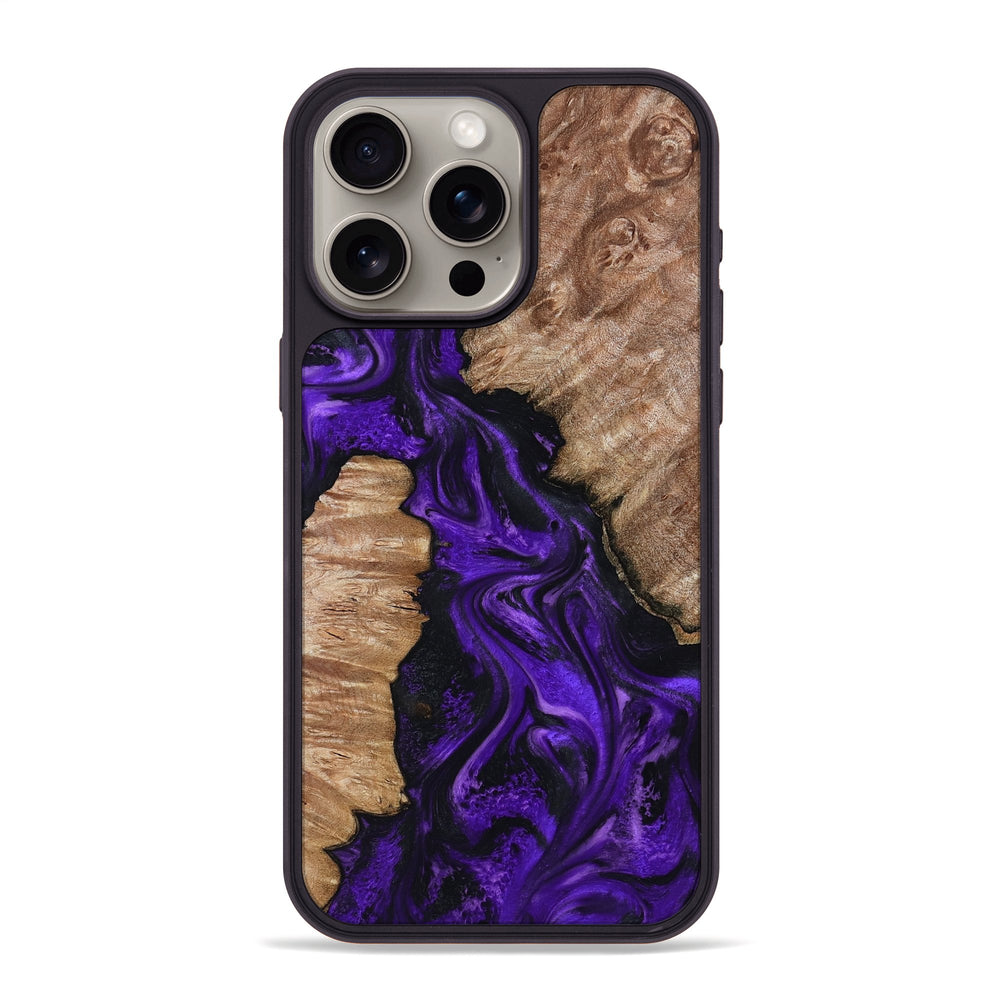 Jailyn has a warm maple wood surface with rich brown tones. It features a beautiful swirl pattern in deep purple that brings a vibrant contrast to the natural wood.