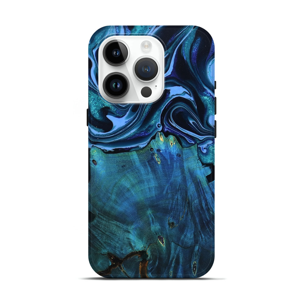 Our Live Edge cases are made from an amazing combination of stabilized wood burl and colored resin. Our stabilization process hardens the wood to protect against cracks and breaks. We do every step of the process at our shop in Northern Indiana. Perfectly fits the iPhone 15 Pro.