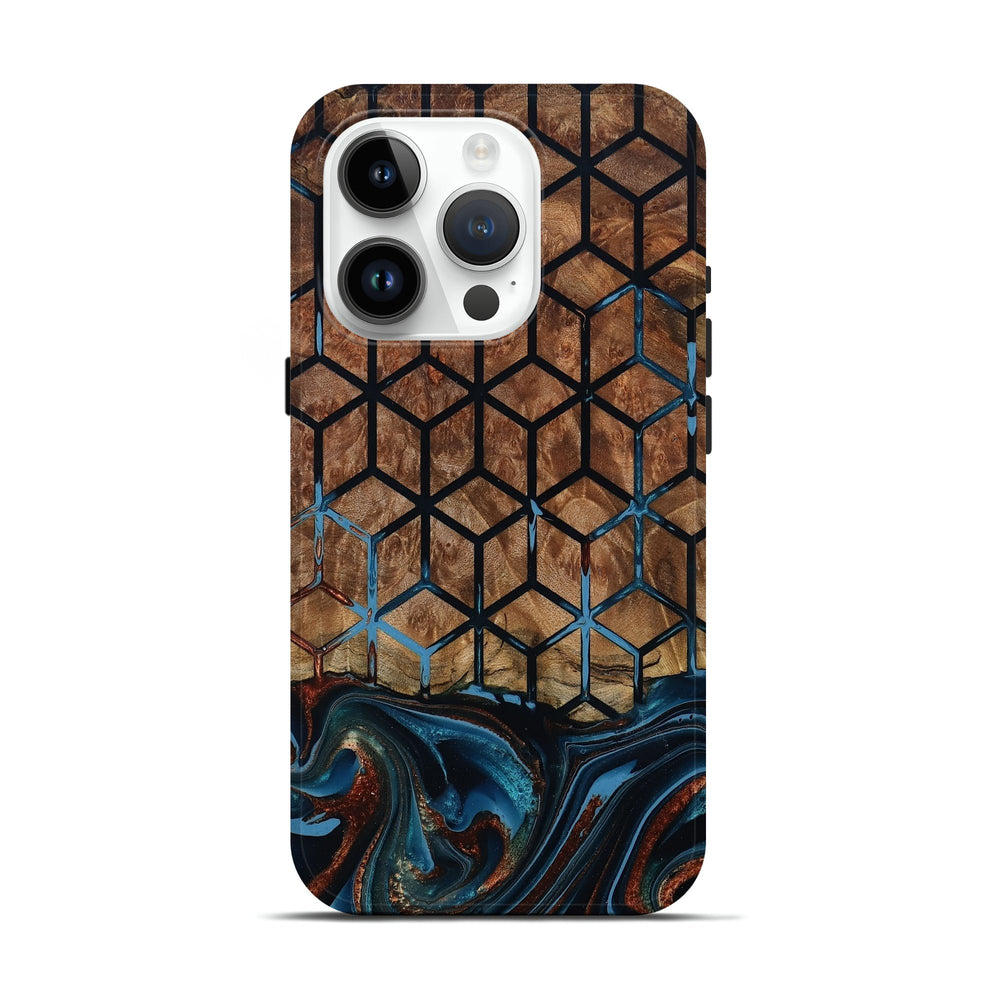Our Live Edge cases are made from an amazing combination of stabilized wood burl and colored resin. Our stabilization process hardens the wood to protect against cracks and breaks. We do every step of the process at our shop in Northern Indiana. Perfectly fits the iPhone 15 Pro.