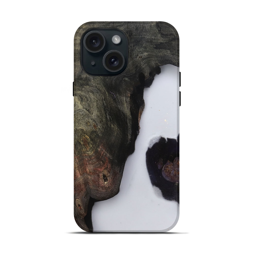 Our Live Edge cases are made from an amazing combination of stabilized wood burl and colored resin. Our stabilization process hardens the wood to protect against cracks and breaks. We do every step of the process at our shop in Northern Indiana. Perfectly fits the iPhone 15.
