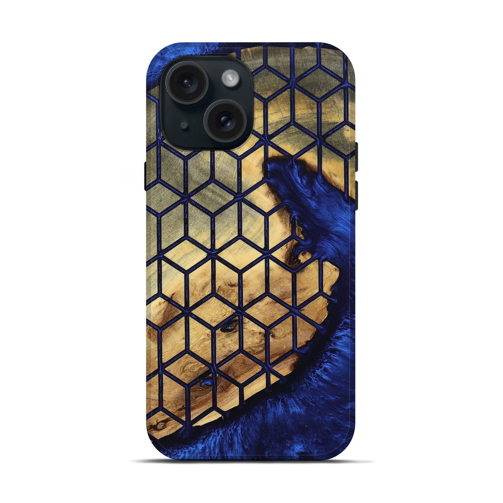 Our Live Edge cases are made from an amazing combination of stabilized wood burl and colored resin. Our stabilization process hardens the wood to protect against cracks and breaks. We do every step of the process at our shop in Northern Indiana. Perfectly fits the iPhone 15.