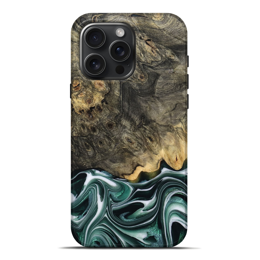 Our Live Edge cases are made from an amazing combination of stabilized wood burl and colored resin. Our stabilization process hardens the wood to protect against cracks and breaks. We do every step of the process at our shop in Northern Indiana. Perfectly fits the iPhone 16 Pro Max.