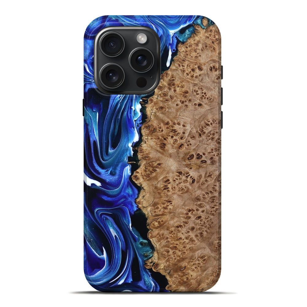 Our Live Edge cases are made from an amazing combination of stabilized wood burl and colored resin. Our stabilization process hardens the wood to protect against cracks and breaks. We do every step of the process at our shop in Northern Indiana. Perfectly fits the iPhone 16 Pro Max.