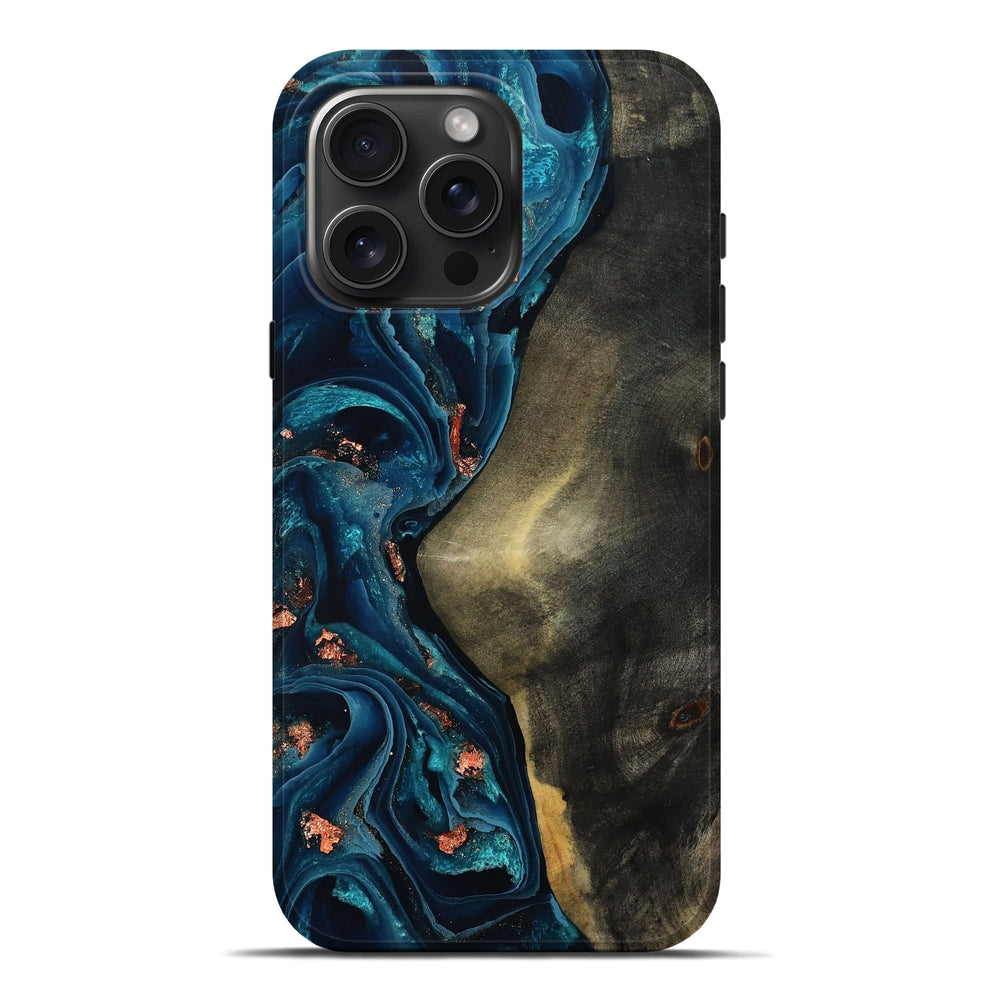 Our Live Edge cases are made from an amazing combination of stabilized wood burl and colored resin. Our stabilization process hardens the wood to protect against cracks and breaks. We do every step of the process at our shop in Northern Indiana. Perfectly fits the iPhone 16 Pro Max.