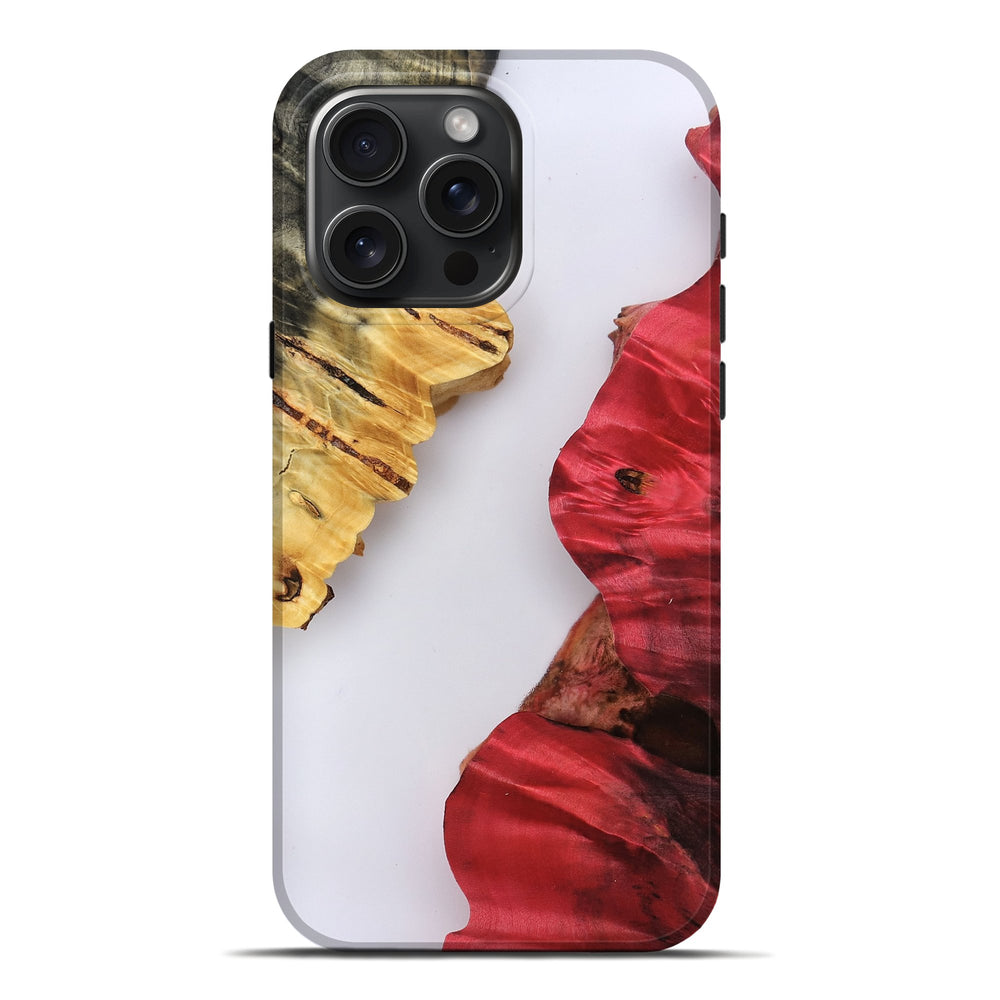 Our Live Edge cases are made from an amazing combination of stabilized wood burl and colored resin. Our stabilization process hardens the wood to protect against cracks and breaks. We do every step of the process at our shop in Northern Indiana. Perfectly fits the iPhone 16 Pro Max.