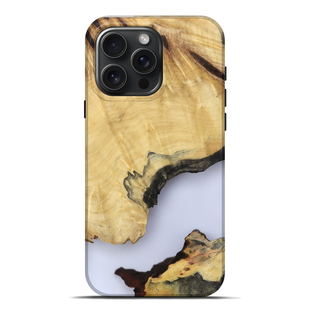 Our Live Edge cases are made from an amazing combination of stabilized wood burl and colored resin. Our stabilization process hardens the wood to protect against cracks and breaks. We do every step of the process at our shop in Northern Indiana. Perfectly fits the iPhone 16 Pro Max.