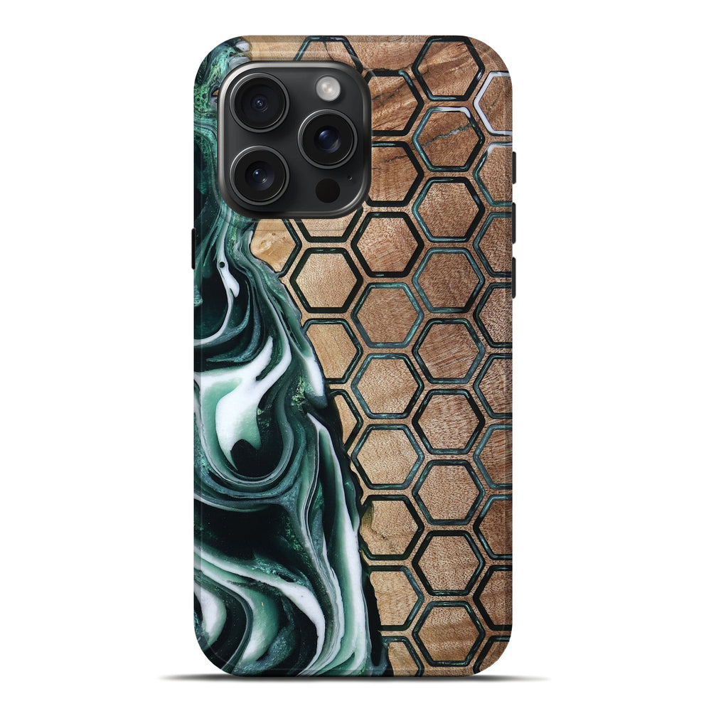 Our Live Edge cases are made from an amazing combination of stabilized wood burl and colored resin. Our stabilization process hardens the wood to protect against cracks and breaks. We do every step of the process at our shop in Northern Indiana. Perfectly fits the iPhone 16 Pro Max.