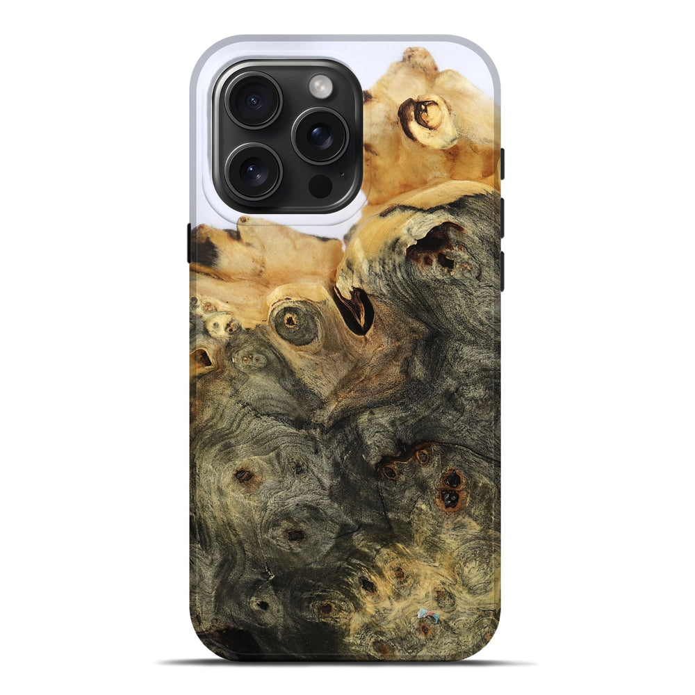 Our Live Edge cases are made from an amazing combination of stabilized wood burl and colored resin. Our stabilization process hardens the wood to protect against cracks and breaks. We do every step of the process at our shop in Northern Indiana. Perfectly fits the iPhone 16 Pro Max.