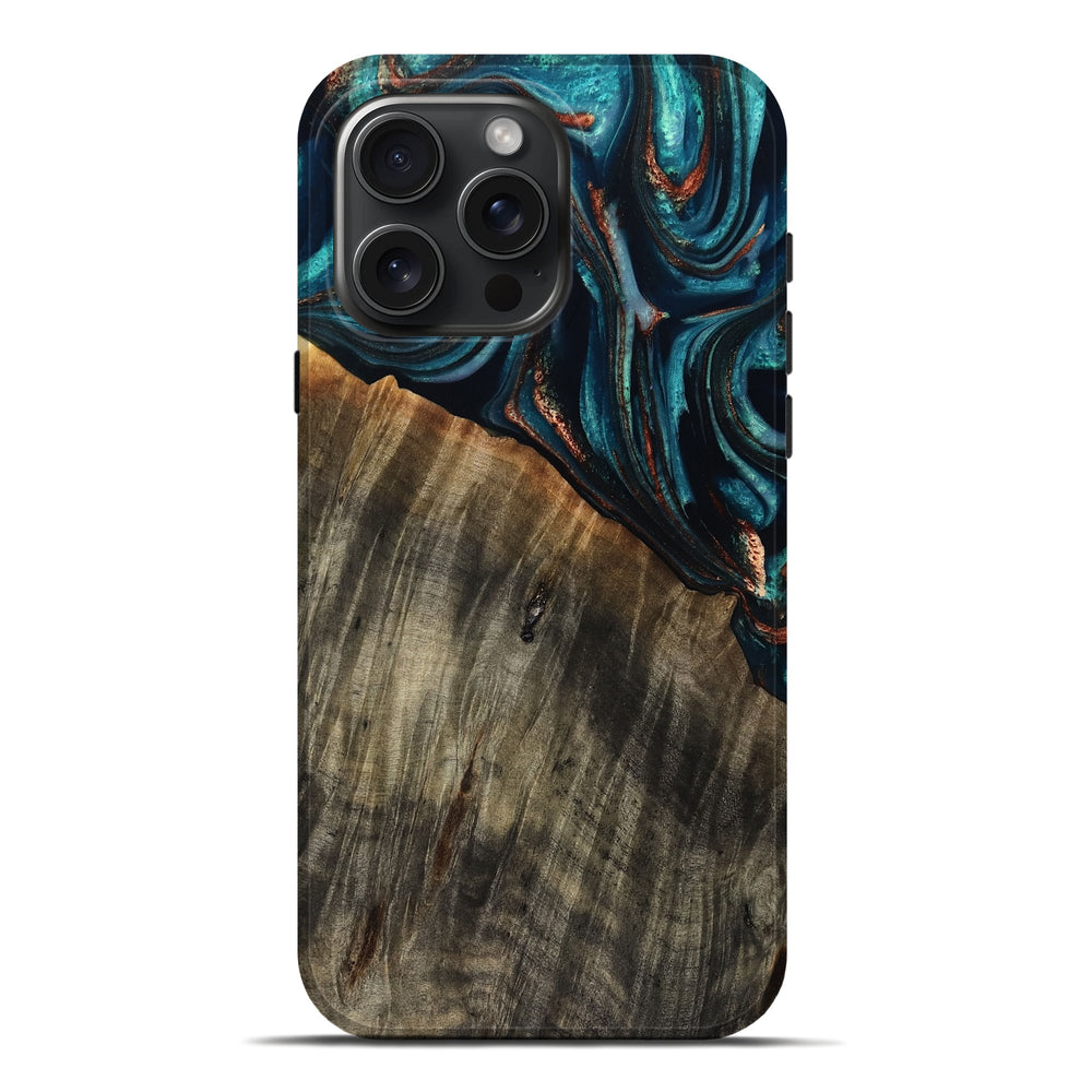 Our Live Edge cases are made from an amazing combination of stabilized wood burl and colored resin. Our stabilization process hardens the wood to protect against cracks and breaks. We do every step of the process at our shop in Northern Indiana. Perfectly fits the iPhone 16 Pro Max.