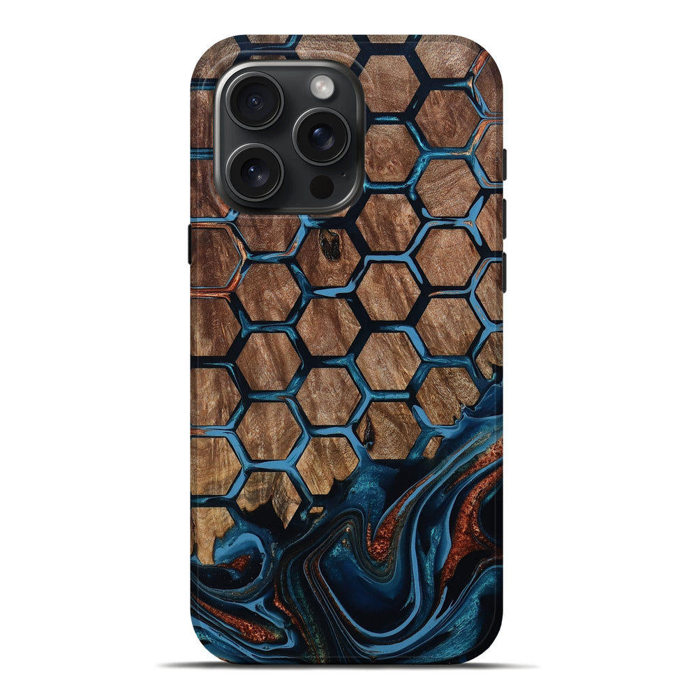 Our Live Edge cases are made from an amazing combination of stabilized wood burl and colored resin. Our stabilization process hardens the wood to protect against cracks and breaks. We do every step of the process at our shop in Northern Indiana. Perfectly fits the iPhone 16 Pro Max.