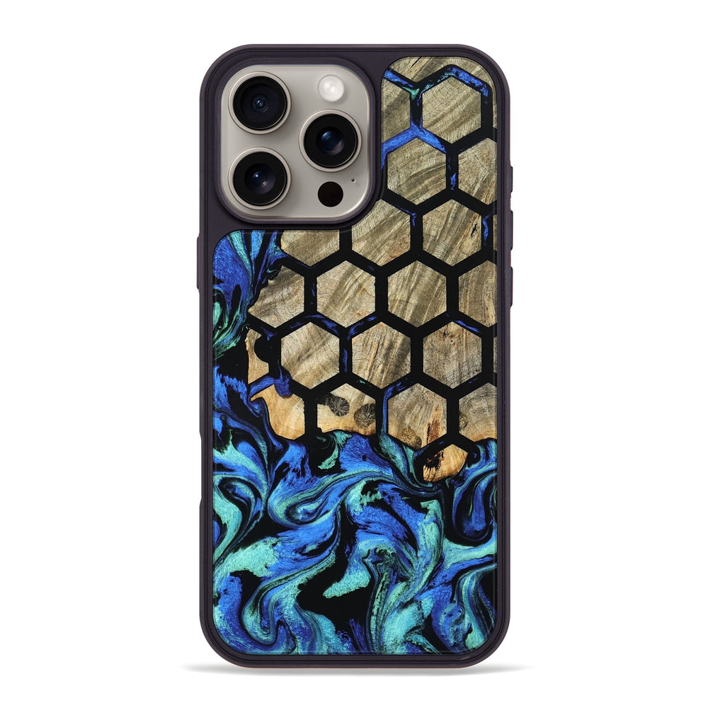 Kiara features a beautiful mix of Buckeye wood with swirling shades of blue and green. The pattern resembles a honeycomb, adding a unique texture to the artwork.