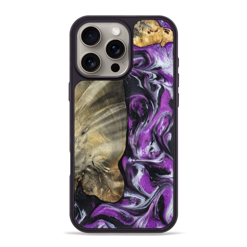 Lolita has beautiful Buckeye wood with smooth, flowing lines that highlight its natural grain. The vibrant purple swirls around it create an eye-catching contrast, adding a lively touch to the piece.