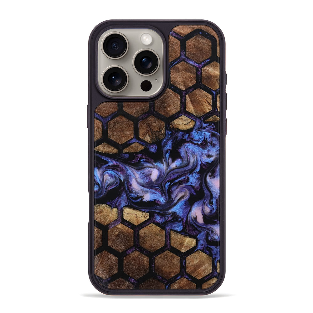 Sawyer features a beautiful mix of warm Maple wood tones with striking shades of blue and purple. The design includes a neat honeycomb pattern, adding a unique touch to its overall look.