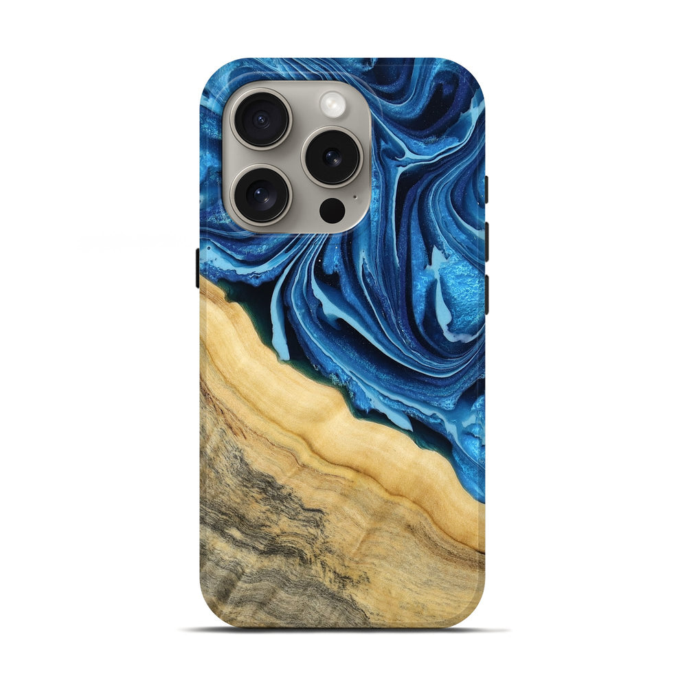 Our Live Edge cases are made from an amazing combination of stabilized wood burl and colored resin. Our stabilization process hardens the wood to protect against cracks and breaks. We do every step of the process at our shop in Northern Indiana. Perfectly fits the iPhone 16 Pro.