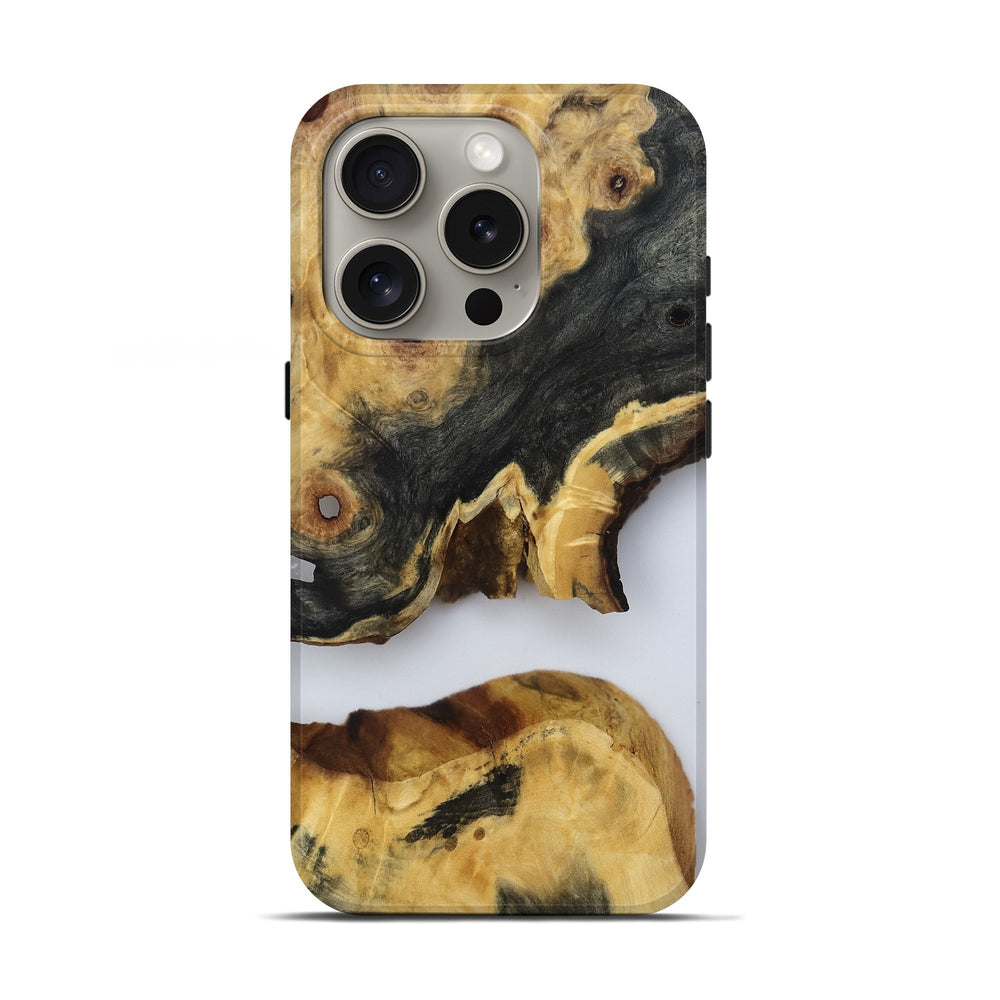 Our Live Edge cases are made from an amazing combination of stabilized wood burl and colored resin. Our stabilization process hardens the wood to protect against cracks and breaks. We do every step of the process at our shop in Northern Indiana. Perfectly fits the iPhone 16 Pro.