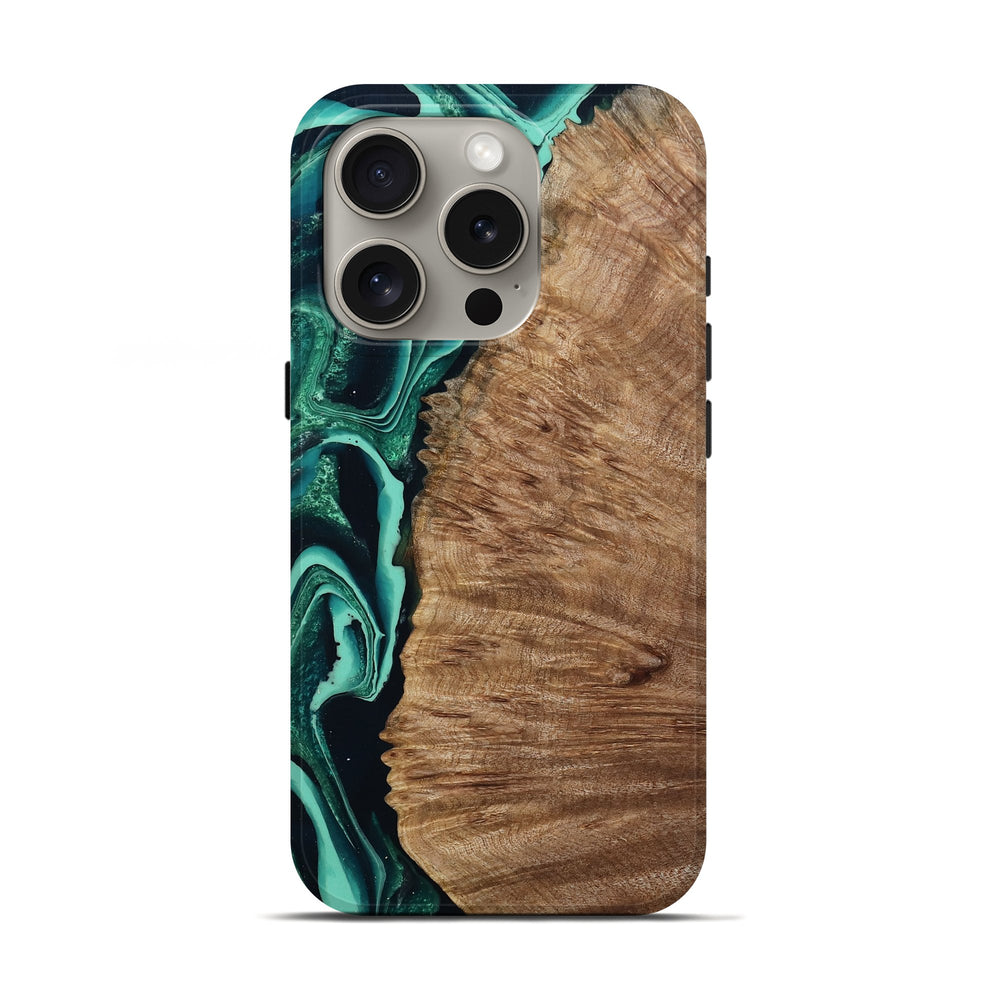 Our Live Edge cases are made from an amazing combination of stabilized wood burl and colored resin. Our stabilization process hardens the wood to protect against cracks and breaks. We do every step of the process at our shop in Northern Indiana. Perfectly fits the iPhone 16 Pro.