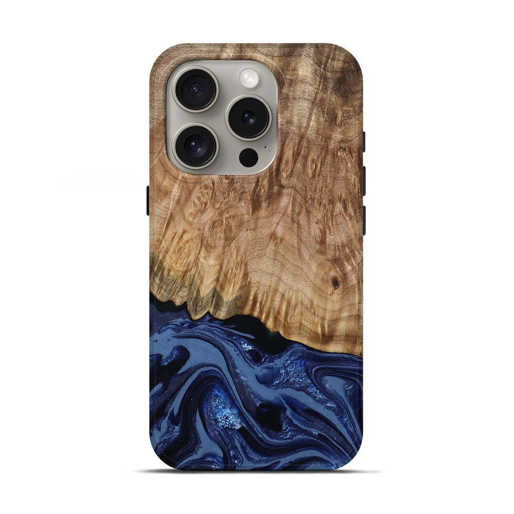 Our Live Edge cases are made from an amazing combination of stabilized wood burl and colored resin. Our stabilization process hardens the wood to protect against cracks and breaks. We do every step of the process at our shop in Northern Indiana. Perfectly fits the iPhone 16 Pro.
