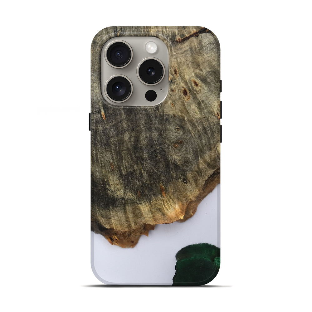 Our Live Edge cases are made from an amazing combination of stabilized wood burl and colored resin. Our stabilization process hardens the wood to protect against cracks and breaks. We do every step of the process at our shop in Northern Indiana. Perfectly fits the iPhone 16 Pro.