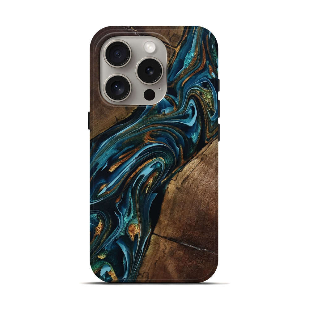 Our Live Edge cases are made from an amazing combination of stabilized wood burl and colored resin. Our stabilization process hardens the wood to protect against cracks and breaks. We do every step of the process at our shop in Northern Indiana. Perfectly fits the iPhone 16 Pro.