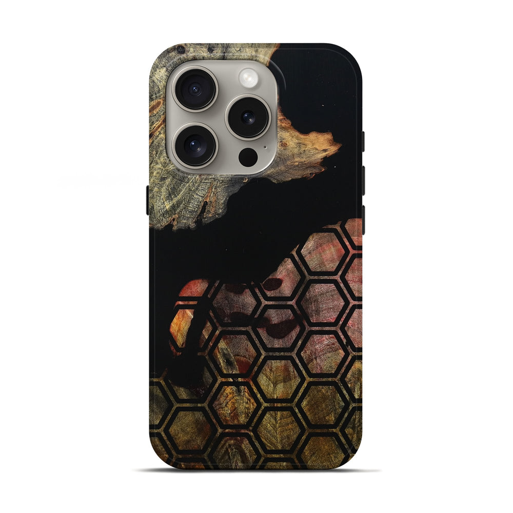 Our Live Edge cases are made from an amazing combination of stabilized wood burl and colored resin. Our stabilization process hardens the wood to protect against cracks and breaks. We do every step of the process at our shop in Northern Indiana. Perfectly fits the iPhone 16 Pro.