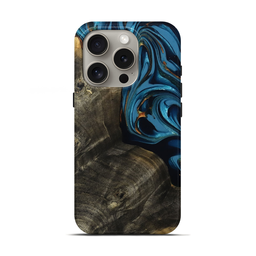 Our Live Edge cases are made from an amazing combination of stabilized wood burl and colored resin. Our stabilization process hardens the wood to protect against cracks and breaks. We do every step of the process at our shop in Northern Indiana. Perfectly fits the iPhone 16 Pro.