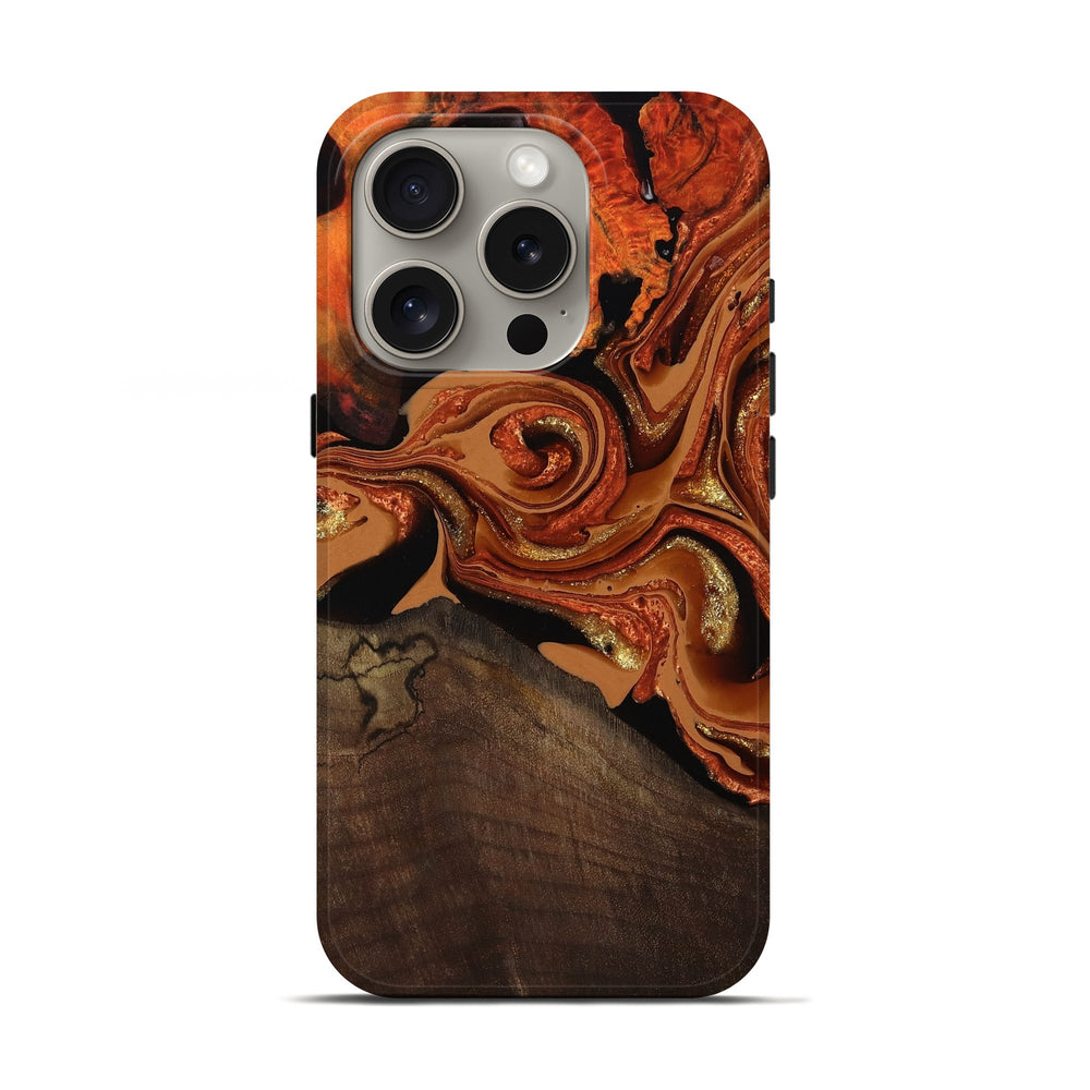 Our Live Edge cases are made from an amazing combination of stabilized wood burl and colored resin. Our stabilization process hardens the wood to protect against cracks and breaks. We do every step of the process at our shop in Northern Indiana. Perfectly fits the iPhone 16 Pro.